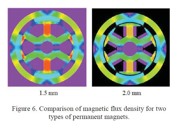 4) coil armature winding. The resulting grids of the PM motor are shown in Figure 4 in which triangular grids were used for modeling with the emphasis on solving for the air gap. Dimensions of each portion of the brushless DC motor in the present work and their related electromagnetic parameters are shown in Table 3. Considering characteristics of the brushless DC motor’s magnetic field distribution, a two-dimensional model of static magnetic field was used for analysis and the procedure is described as follows.